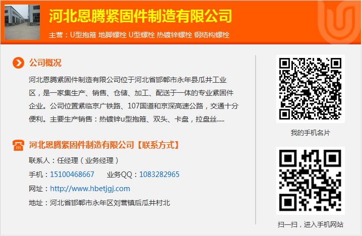 厂家生产地脚螺栓,河北永年恩腾紧固件制造有限公司是专业生产地脚螺栓厂家,长期供应地脚螺栓价格表、螺栓螺纹规格的具体标准及参数(2),规格表,双头螺栓!不锈钢双头螺栓安装方法。及标准,45号六角螺栓钢地脚螺栓价格,u型螺栓!热镀双头螺栓规格锌地脚螺栓批发,订做各种地脚螺栓,包检测。不锈钢u型螺栓厂家不锈钢双头螺柱
